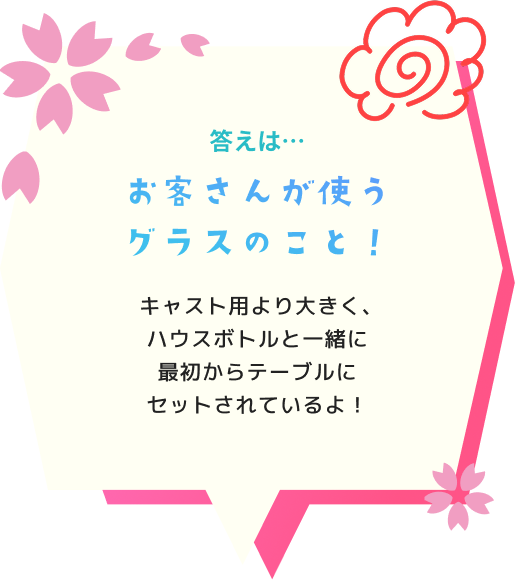 ハウスボトルと違い、キャストも一緒に飲めるのが特徴。